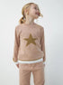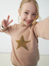 Para as meninas que amam brilhar! Um tricô lindo com estrela em lurex na parte da frente e mangas. Possui também listras de lurex nos punhos e barra do corpo.